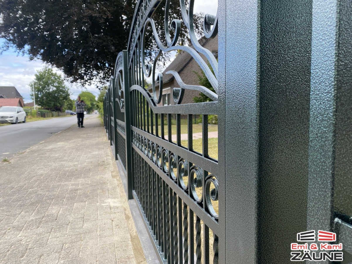 Emi & Kami Zäune hat in seinem Angebot geschmiedete Zäune und Geländer, Systemzäune, Eingangstore und Tore. Wir gehen jeden Auftrag individuell an. Die für unsere Kunden gefertigten Elemente verfügen über Korrosionsschutz: Feuerverzinkung und Pulverbeschichtung. Wir realisieren Aufträge in ganz Deutschland. Wir garantieren eine komplexe Ausführung von Zäunen, Toren und Montage vor Ort beim Kunden. Kontaktieren Sie uns – wir garantieren Langlebigkeit und hohe Verarbeitungsqualität!